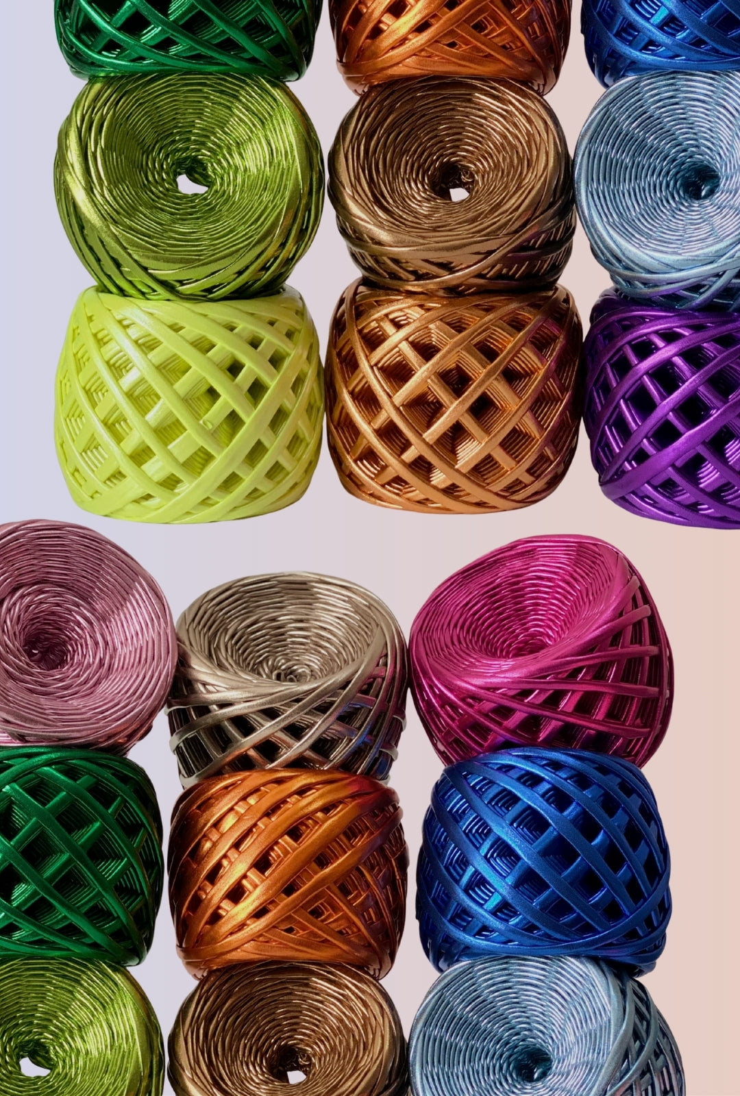 Our metallic t-shirt yarn blends fibres with a bold, glossy finish. Perfect for eye-catching creations that demand attention. Use like regular t-shirt yarn & just as soft.